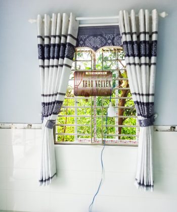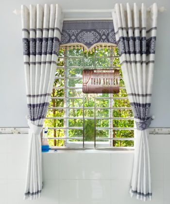 - Rèm vải gấm nhẹ nhàng hoa văn.