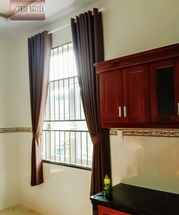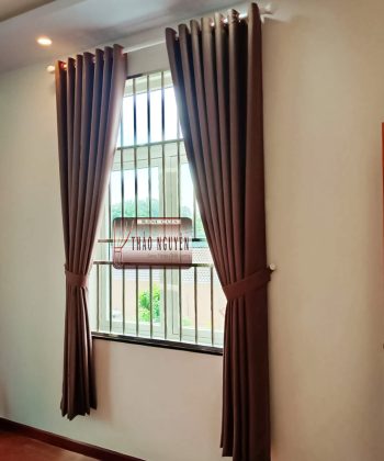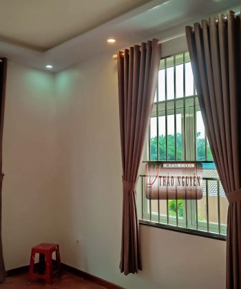 Công trình rèm biệt thự rèm cửa tt. Long Thành Tp. Biên Hòa Đồng Nai, rèm vải gấm bố trơn một màu không có hoa văn.