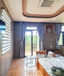 Công trình rèm nhà ở Long Thành Đồng Nai gồm rèm vải một màu hoa văn nổi + rèm voan trắng và rèm cầu vồng Hàn Quốc