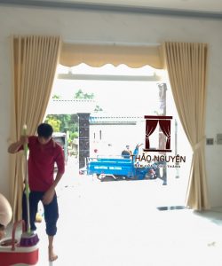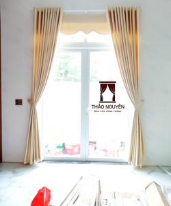 Công trình rèm nhà ở Long Thành Đồng Nai gồm rèm vải một màu hoa văn nổi và rèm cầu vồng Hàn Quốc