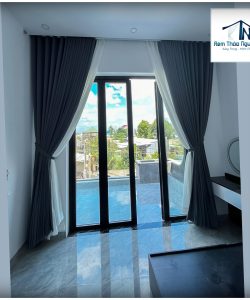 - Chất liệu: Rèm dày, rèm chống nắng để hạn chế ánh nắng gắt buổi chiều.