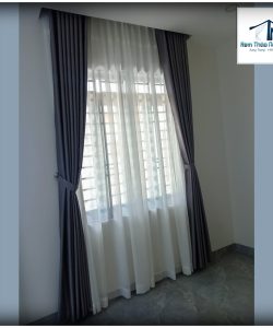 Sự kết hợp giữa vải chính xám đậm và voan trắng không chỉ đẹp về mặt thẩm mỹ mà còn mang lại nhiều lợi ích thiết thực. Vải chính dày giúp cản sáng và nhiệt, tạo ra một môi trường thoải mái và riêng tư. Voan trắng, mặt khác, cho phép ánh sáng tự nhiên tràn vào, tạo ra một bầu không khí thoáng đãng và tươi sáng.