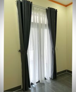 - Lớp Voan Trắng: Nằm phía trong, lớp voan mỏng với họa tiết tinh tế giúp lọc ánh sáng tự nhiên một cách mềm mại. Khi bạn cần sự riêng tư nhưng vẫn muốn căn phòng tràn ngập ánh sáng, chỉ cần vén lớp rèm vải chính và giữ lại lớp voan. Ánh sáng sẽ được khuếch tán nhẹ nhàng, tạo hiệu ứng lung linh, lãng mạn, mà không gây chói mắt.