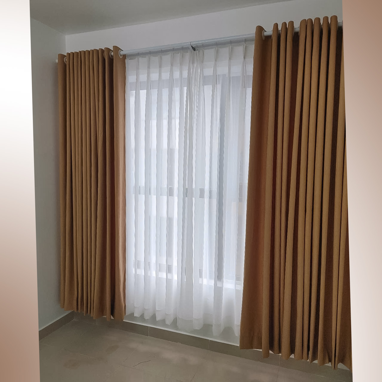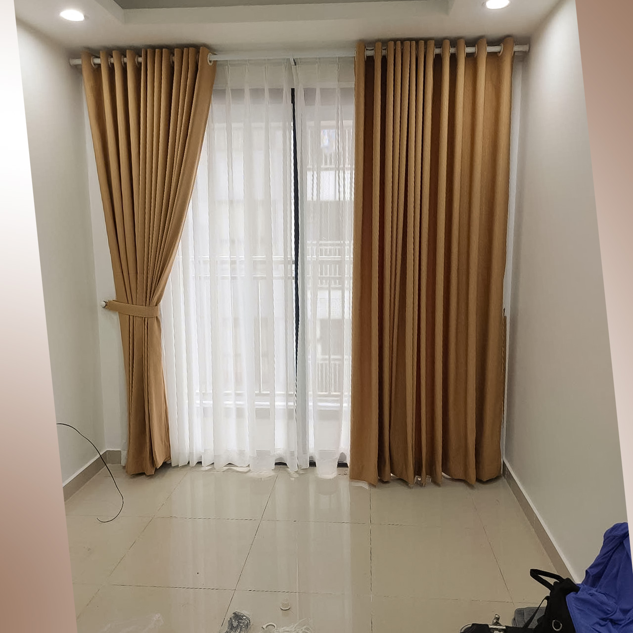 - Sử dụng: Kéo lớp rèm vải chính khi cần cản sáng hoàn toàn hoặc riêng tư. Kéo lớp voan khi muốn lấy ánh sáng dịu nhẹ. Có thể vén rèm bằng dây buộc hoặc thanh vén để tạo kiểu.