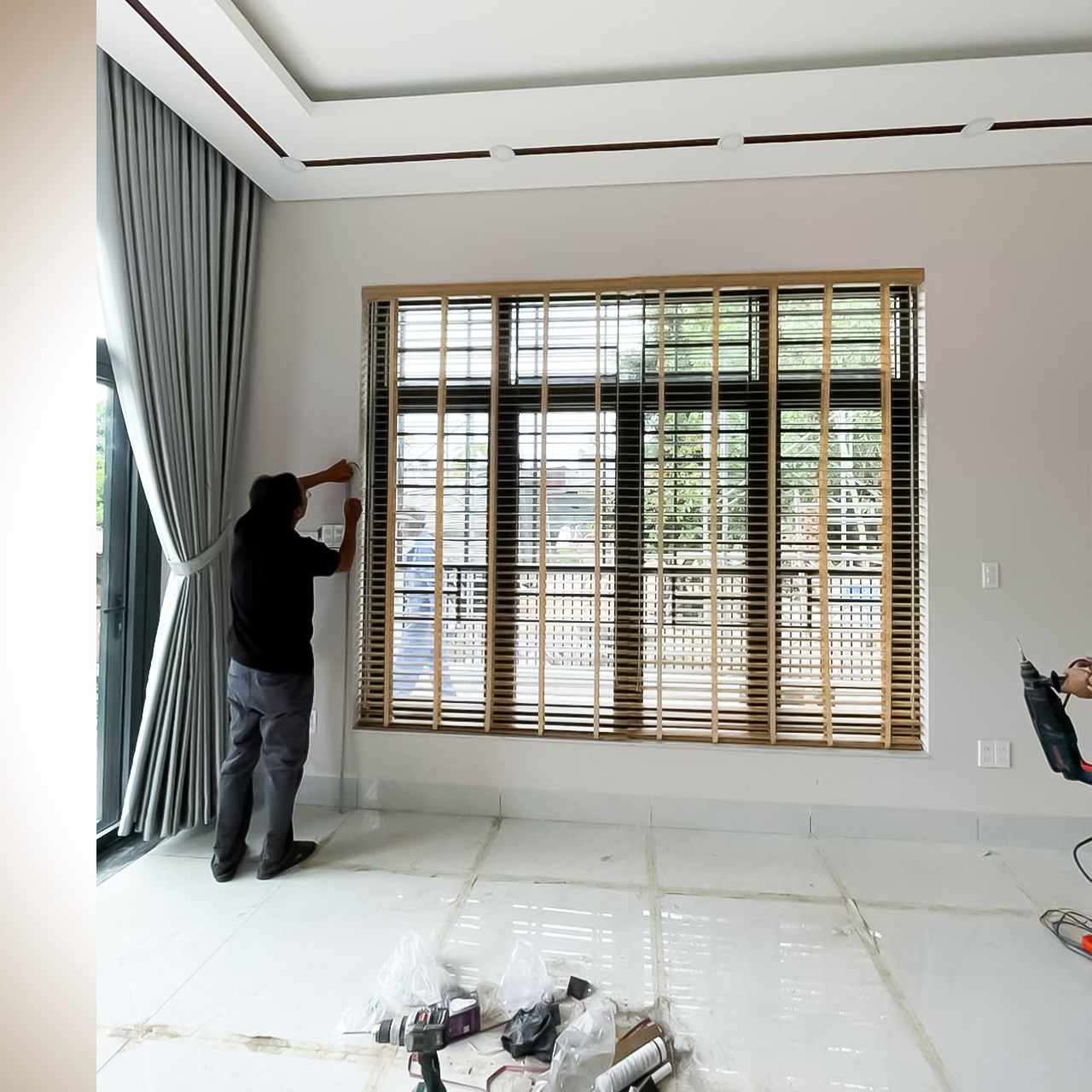 Nếu rèm vải mang đến sự lãng mạn, thì rèm sáo gỗ lại là bản tuyên ngôn của vẻ đẹp mộc mạc, tinh tế. Từng thanh gỗ được tuyển chọn kỹ lưỡng, giữ trọn vẹn vân gỗ tự nhiên, mang hơi thở của rừng xanh vào không gian sống. Rèm sáo gỗ không chỉ điều chỉnh ánh sáng linh hoạt, mà còn là một tác phẩm nghệ thuật, khẳng định gu thẩm mỹ tinh tế của gia chủ.