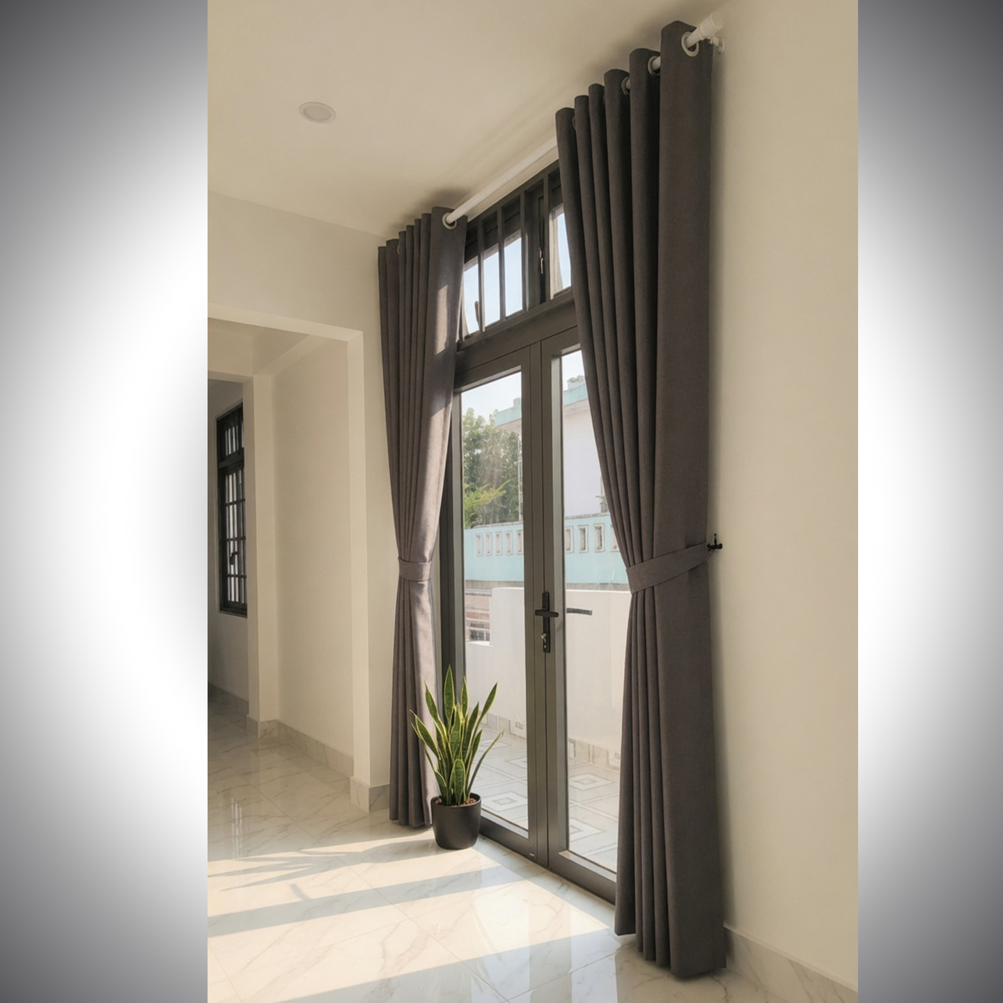 Kiểu dáng: Nên sử dụng rèm âm trần hoặc lắp cao sát trần để tôn lên chiều cao của ngôi nhà. 📏