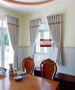 Công trình rèm nhà phố, rèm cửa tt. Long Thành Tp. Biên Hòa Đồng Nai, rèm vải gấm bố trơn một màu không có hoa văn.