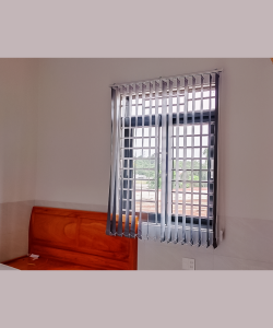 Đối với các khu vực như cửa sổ nhỏ trong phòng ngủ, phòng khách và hành lang, rèm lá dọc xám trơn là lựa chọn lý tưởng: