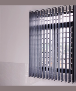3. Rèm Lá Dọc Xám Trơn – Giải Pháp Hiện Đại Cho Các Ô Cửa Sổ Nhỏ Và Hành Lang
