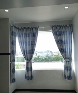 – Công trình nhà ở gần chợ mới Long Thành: rèm vải gấm hoa văn