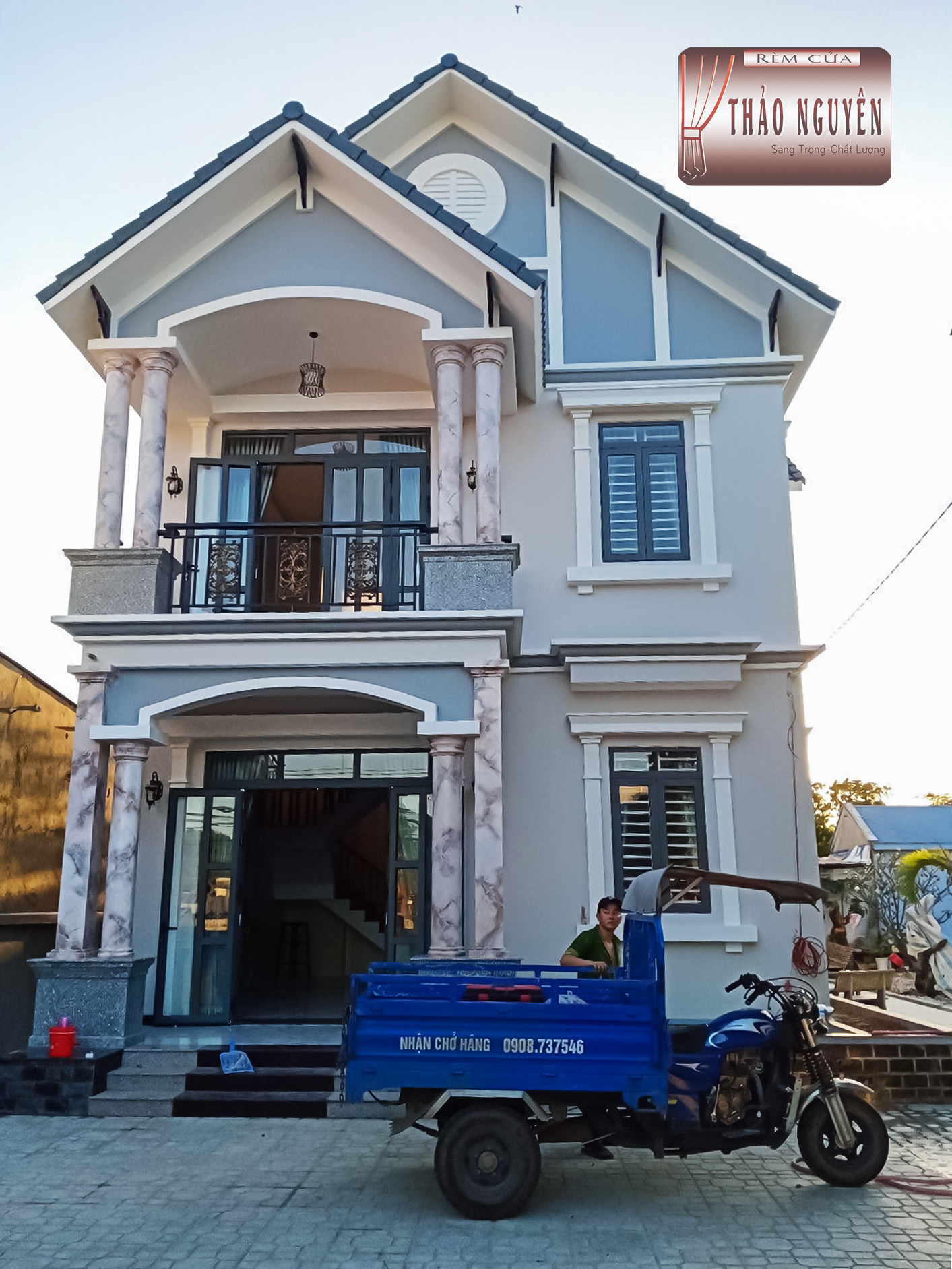Rèm vải gấm một màu hoa văn nổi _ rèm nhà phố ở Bầu Cạn Long Thành Đồng Nai.